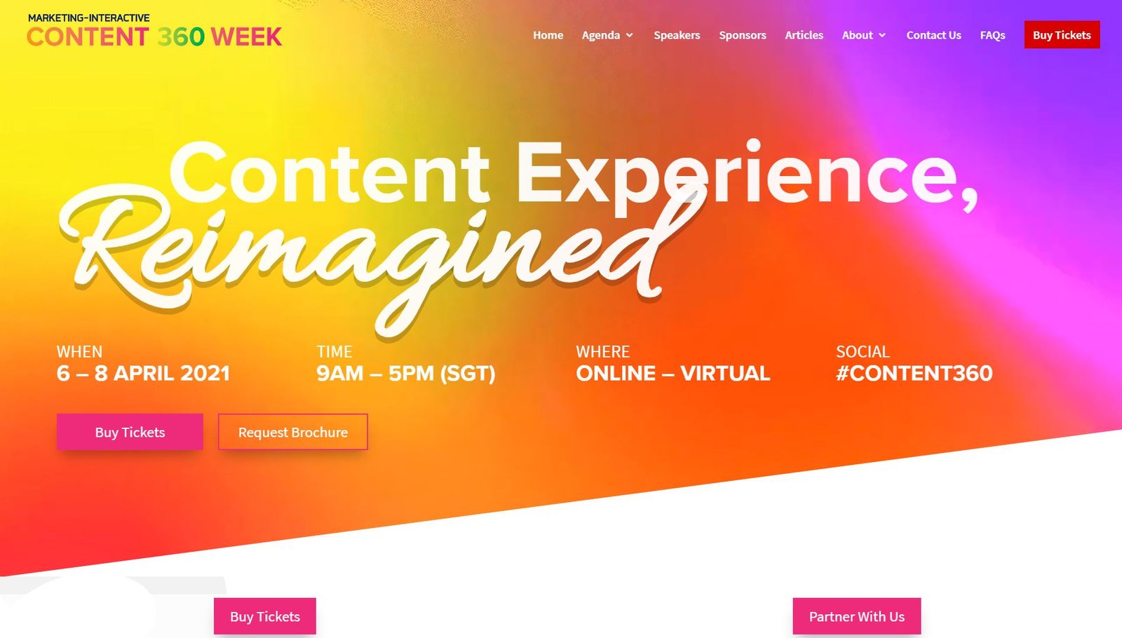 The annual conference, which features top digital marketers and content marketers, is the largest content marketing event in the Philippines. It has since shifted to virtual and renamed as Content 360 Week.